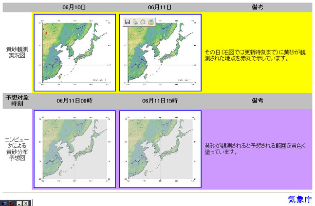 現在、中国のコビ砂漠は、常に北京に接近し、1994年から1999年まで52,400平方キロメートルずつ拡張していると観測。4億人もの人々が砂漠化の脅威の下に暮らしている。シベリアからの寒気団はこれらの乾燥した砂漠を撹拌、黄砂は成長しながら朝鮮半島および日本へと渡ってきている。