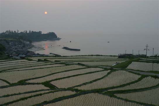 日引の棚田ー2 石川県富来町 大笹波水田 石川県富来町 大笹波水田 [ 棚田紀行 Vol . 7 No.9 ]5月24日