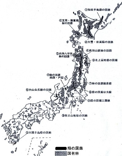 林野庁では、広範囲で効果的な森林生態系の保護のために、点在している保護林同士を連結しネットワークを形成するための「緑の回廊」の設定を進めているが、このほど新たに山梨県・静岡両県境に位置する富士山の中腹一帯ならびに神奈川・静岡・山梨各県にまたがる丹沢山塊一帯の2ヵ所の森林について設定することを決めた。 「緑の回廊」とは、各地に点在する保護林同士とその間に存在する国有林や民有林の森林を結びつけ、設定した帯状の森林。コリドーとも呼ばれる野生生物が行き来する移動経路の確保をはじめ、広範囲かつ効果的な森林生態系全体の保護を目的としており、回廊を通じて、野生生物の移動経路の確保と相互交流により、分断された個体群の保全と遺伝的多様性の確保、生物多様性を保全する働きが期待される。回廊内では、原則として人工林は広葉樹を導入して針広混交林に誘導したり、野生動物の営巣等に重要な古木や餌となる植物は残すなど、野生動植物に配慮した森林施業が行なわれる。現在、北海道・東北を中心に全国で13ヵ所(計約28万ha)が設定され、もっとも長い回廊は、奥羽山脈一帯を南北に延びるもので、長さは約400kmにもおよぶ。 いずれは富士山と丹沢を結びひとつの回廊へ 今回設定が決定した2ヵ所の内容は、丹沢が、総面積8,302ha、延長43.0kmの神奈川県秦野市から静岡県小山町に至るエリア。面積の内訳は、国有林3,552ha、民有林4,750ha(神奈川県有林2,403ha、横浜市有林2,044ha、小山町有林303ha)からなり、関係する保護林は丹沢山地森林 生物遺伝資源保存林など3ヵ所。丹沢山塊から富士山へつなぐための回廊と位置づけられている。 また、富士山は、総面積5,735ha、延長24.2kmの富士山の中腹をほぼ1周する形のエリア。面積の内訳は、国有林2,120ha、民有林3,615ha(山梨県有林3,606ha、私有林[浅間神社社有林]9ha)からなり、関係する保護林は富士山亜高山帯植物群落保護林など6ヵ所となっている。 設定時期はいずれのエリアも今年度末(平成14年)を予定している。 特徴としては、2ヵ所共、区域面積に占める民有林の割合が国有林を上回っており、このような民有林主体の回廊は緑の回廊設定以来、全国初となる。回廊間に存在する民有林と国有林の連携した取組みとして注目される。